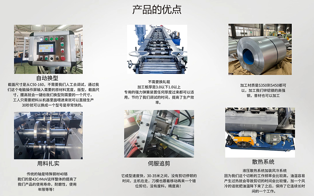 High producing speed , with a 0-50m/min forming speed and continuous cutting